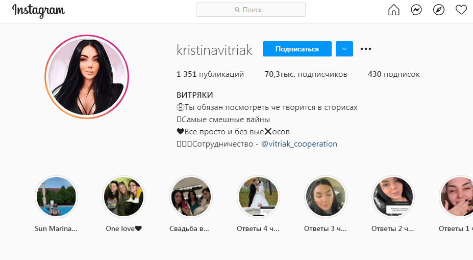 У девушки довольно большое количество подписчиков 70 тысяч. Она как и все блогеры ведет страницу о своей жизни и снимает смешные жизненные вайны.