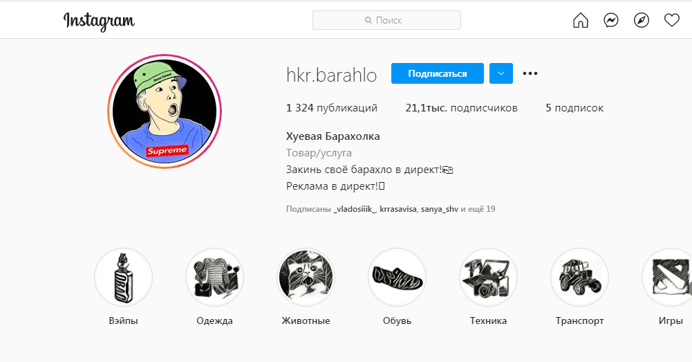 Ребята не остановились на одной странички и создали ряд тематических блогов. На странице hkr.barahlo люди сбрасываю в директ вещи которые хотят продать или обменять их выставляют на странице и таким образом находиться покупатель, который уже связывается с вами напрямую. Страница сейчас насчитывает более 20 тысяч подписчиков