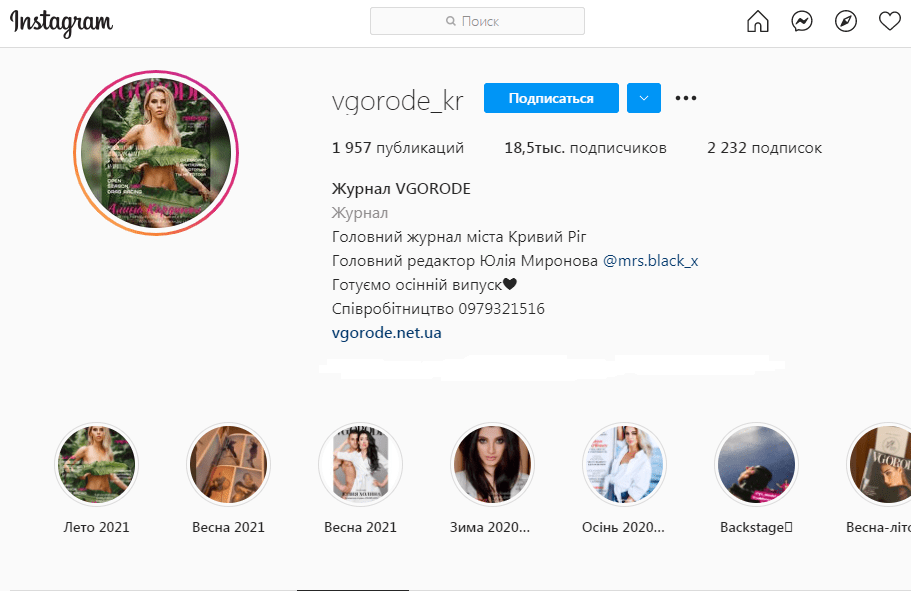 Блог насчитывает 18 тысыч подписчиков и в нем рассказывалось о красоте,уходе за кожей и волосами, разные советы. Также выпускается местный журнал который называется Vgorode и проводиться ежегодный конкурс персона года в разных номинациях, где подписчики сами в комментариях пишут претендента.