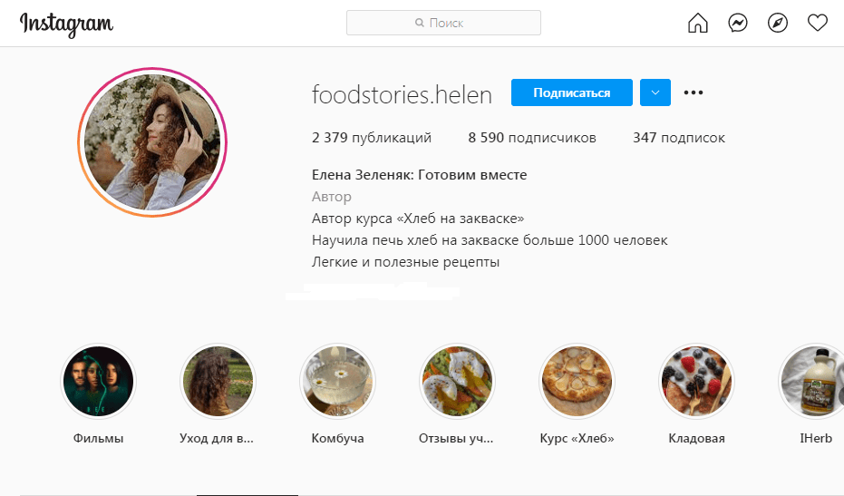 Количество подписчиков у девушки небольшое около 9 тысяч. Она регулярно выставляет вкусные рецепты разных блюд. Блог выглядит очень красиво и аппетитно. Является автором курса “Хлеб на закваске”.