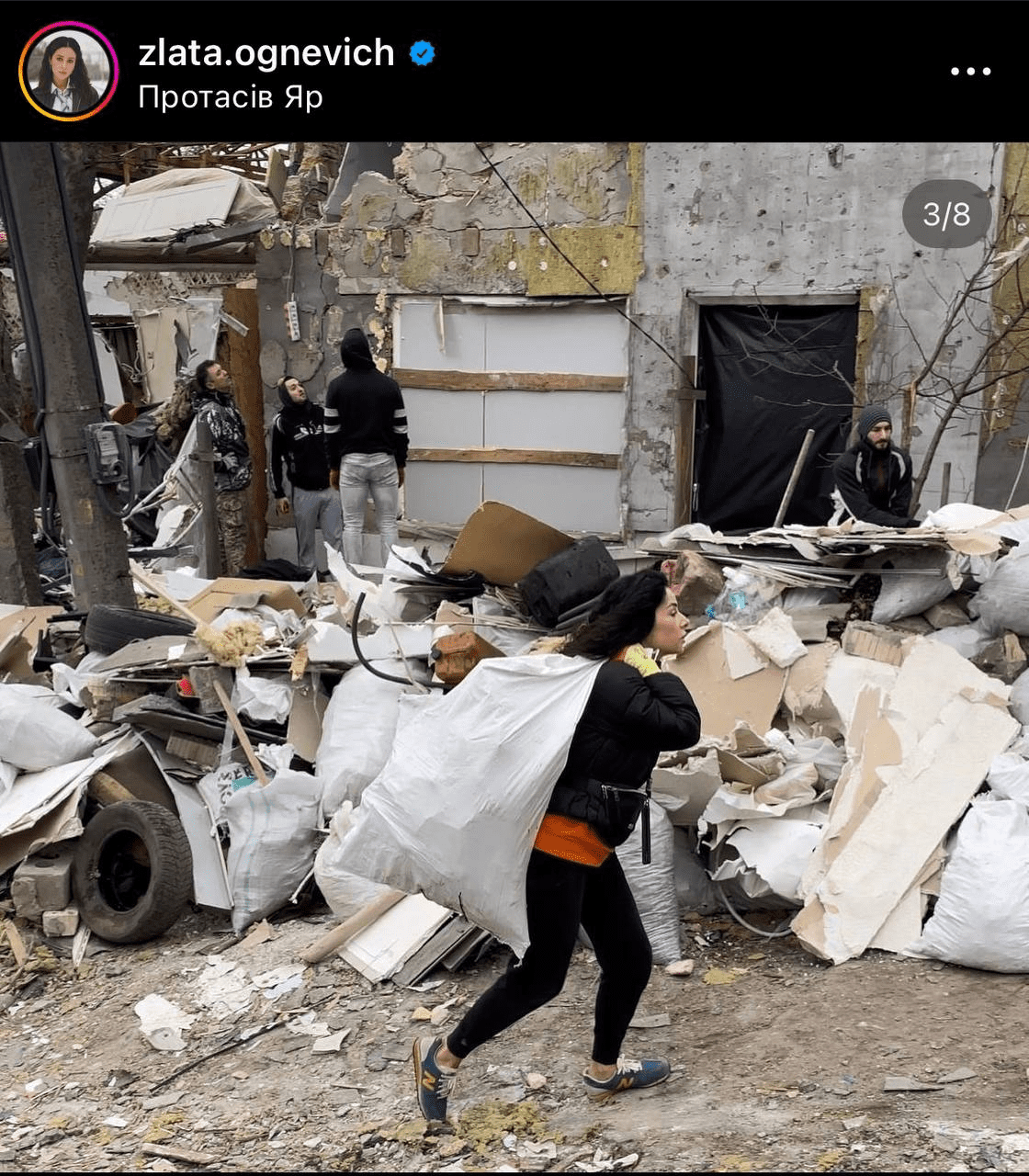 Фото з інстаграми Злати Огневич. Співачка допомагає волонтерам та комунальним службам після чергового ракетного удару по Києву.
